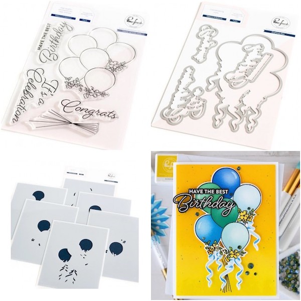 Ribbons and Balloons Stamp, Die and Stencil Combo