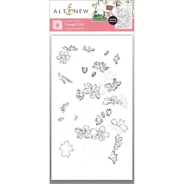 Tranquil Trail – complete bundle from Altenew, Create stunning nature-inspired cards with the Altenew Build-A-Garden: Tranquil Trail Complete Bundle. This all-in-one crafting set includes a beautifully detailed floral stamp set, coordinating dies, layering stencil, and blending brush—everything you need to create dimensional, professional-looking handmade cards with ease.