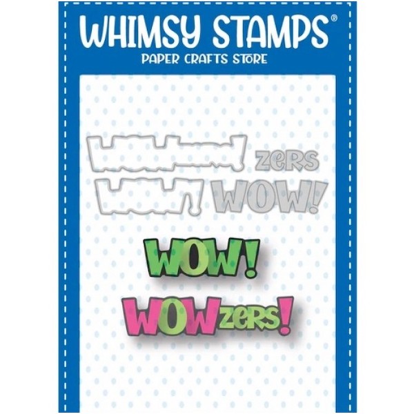Wowzers Word and Shadow Die Set from Whimsy Stamps, Set of 4 dies – the word Wow! and a coordinating shadow die as well as the word Wowzers! and a coordinating shadow die.